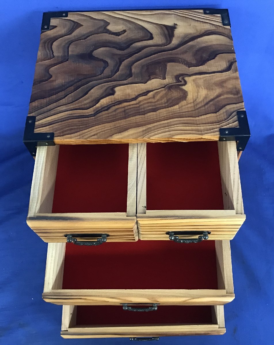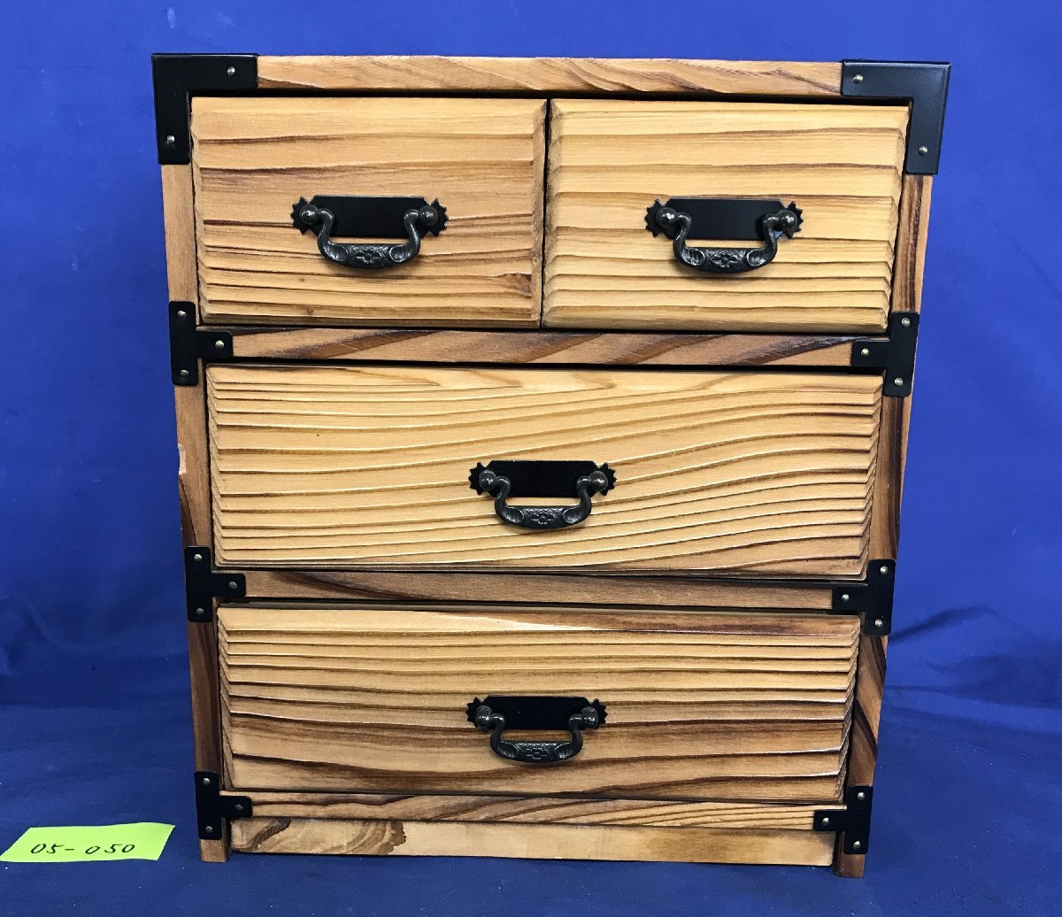 ★05―050★木製家具 和風 3段 小引き出し 24×28×20cm/昭和レトロ 古民家 和箪笥 小物入れ ミニチェスト ウッド 木目 焼杉[100] 收藏