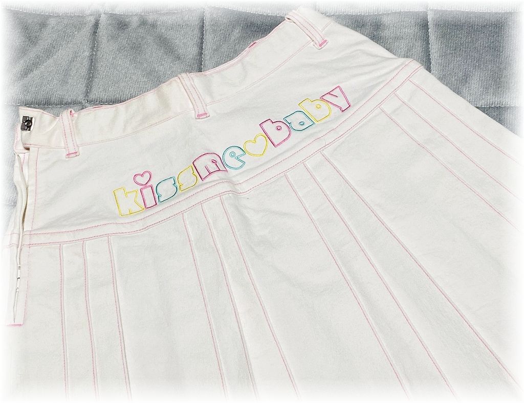 ◆mezzo piano メゾピアノジュニア 女の子 可愛い 清楚 上品 ステッチ ビジュ デニム スカート (白 ピンク) M(150) 收藏