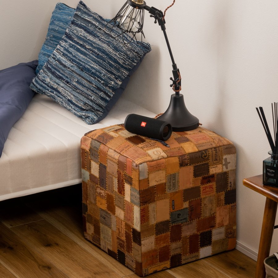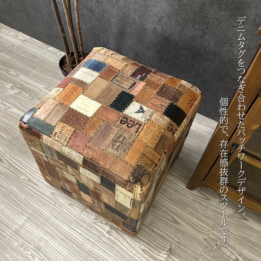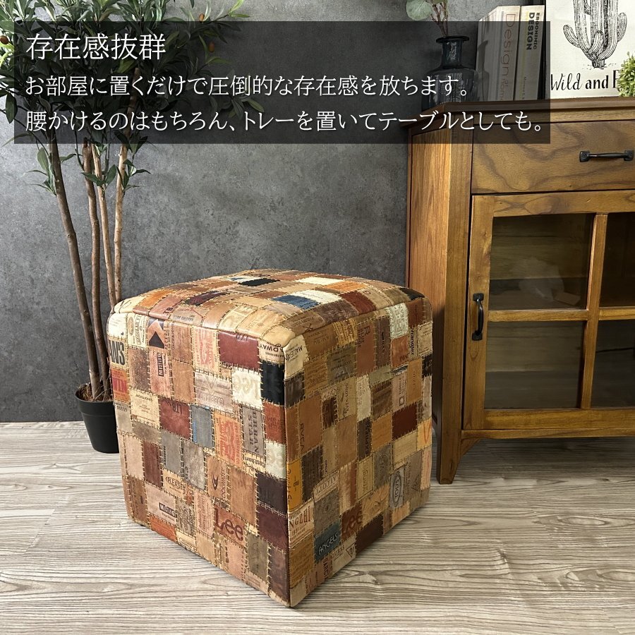 スツール スクエアスツール デニムタグ 本革 椅子 イス オットマン ビンテージ 男前 革製 おしゃれ 送料無料(一部除) 新品未使用 76S4 收藏