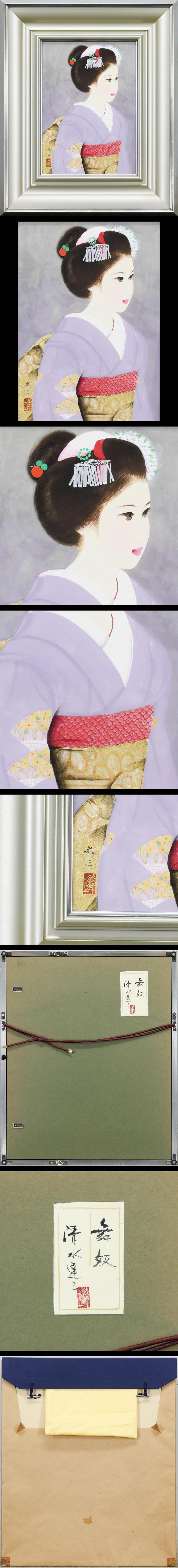 【真作】【WISH】清水達三「舞妓」日本画 4号 金箔 プラチナ泥 金泥 共シール ◆紫香る上品な和美人 〇日本芸術院会員 #25102546 收藏