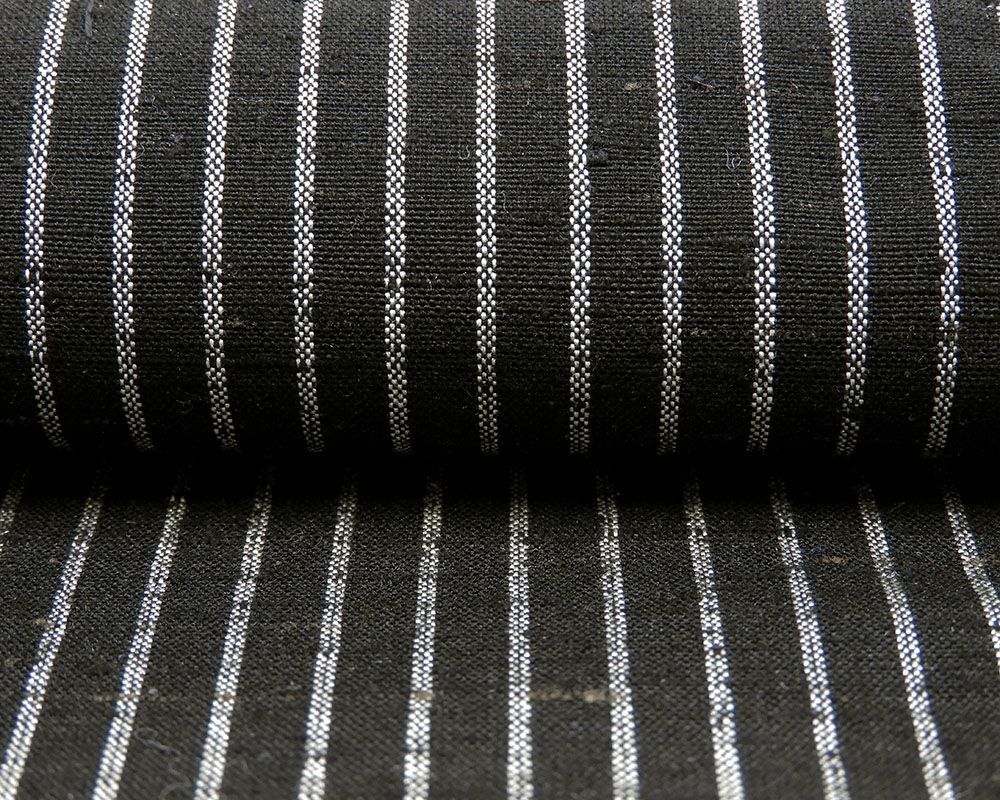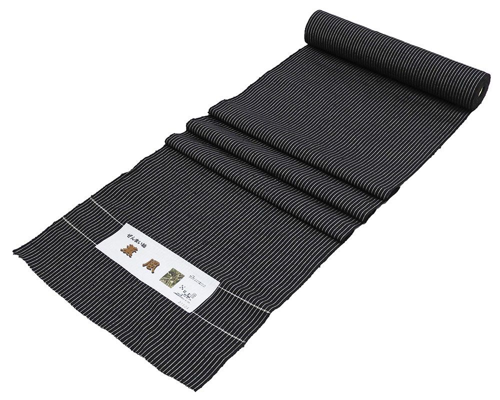 紬 絹 薫風 ぜんまい紬 中村工房 縦縞 黒 反物 着物 新品 未仕立 d2039 收藏