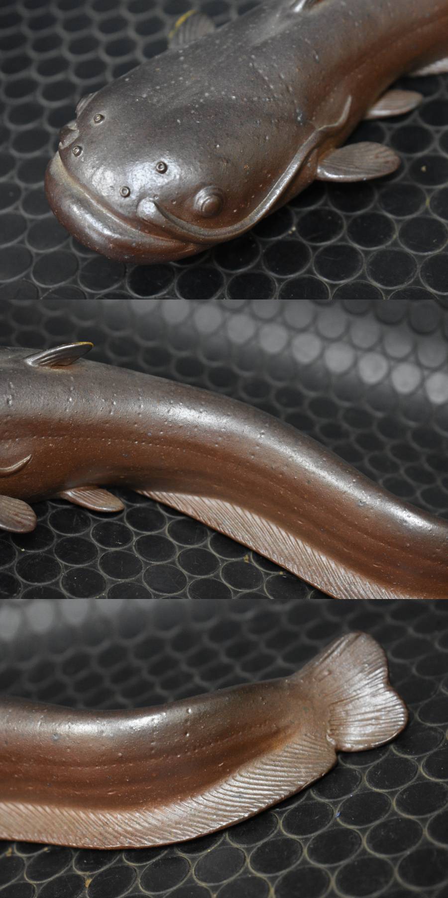 うぶ品 時代物 木村友敬 木村長十郎友敬 備前焼 鯰 置物 魚 古美術品 收藏