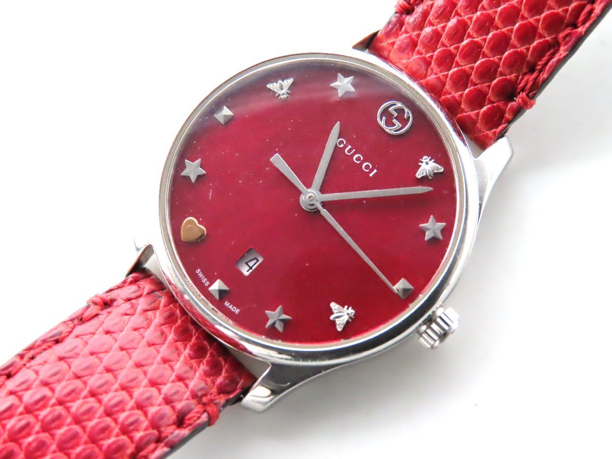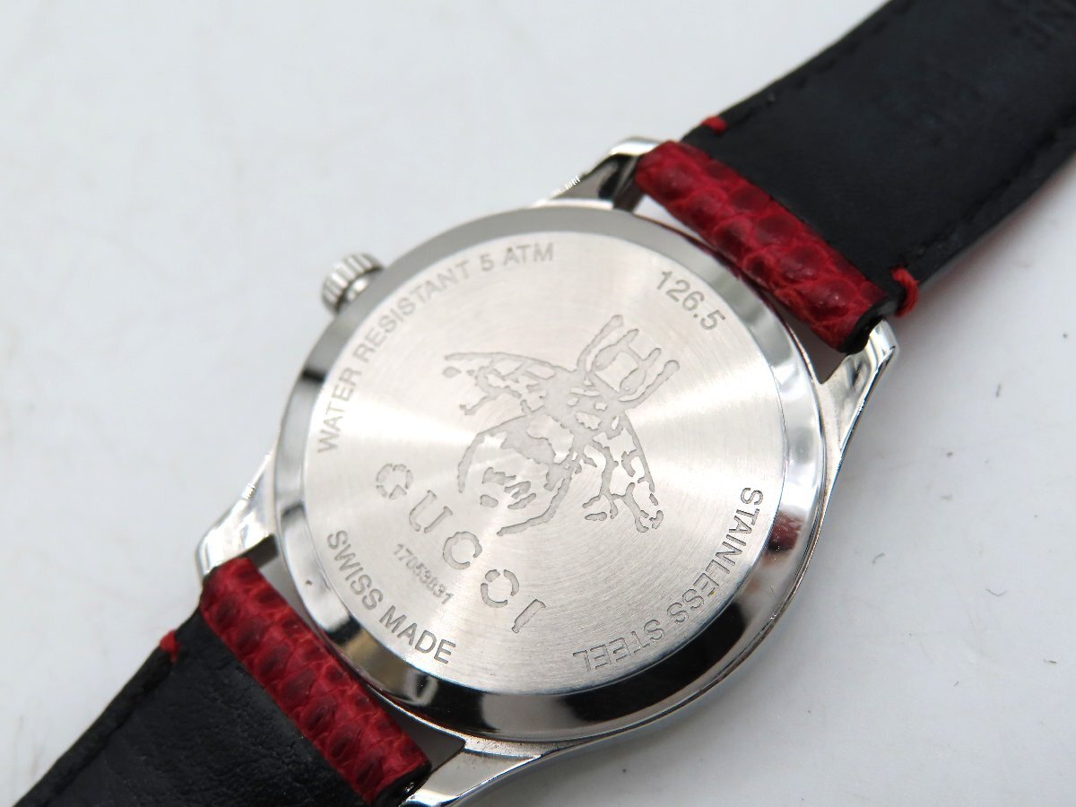 1円 グッチ 126.5 Gタイムレス SS/革 レッドシェル文字盤 レディース 不動 QZ 27222 LGRS 收藏