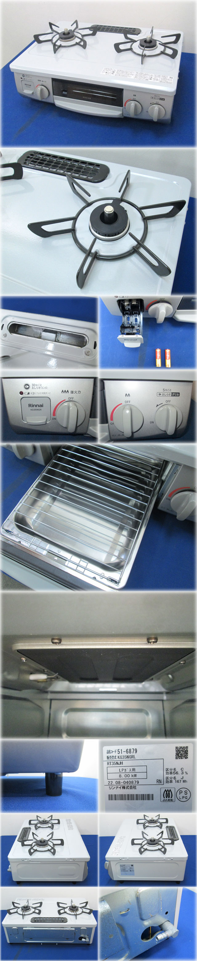 【美品】リンナイ 水なし片面焼グリル付ガステーブル KG35NGRL LPガス 左強火力 グリル部実使用なし クリスタルコート ワンピーストップ 收藏