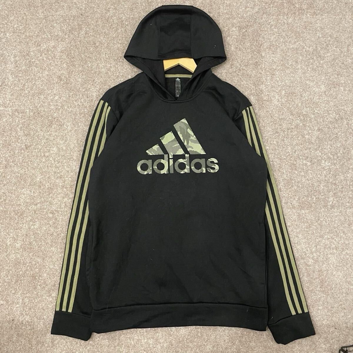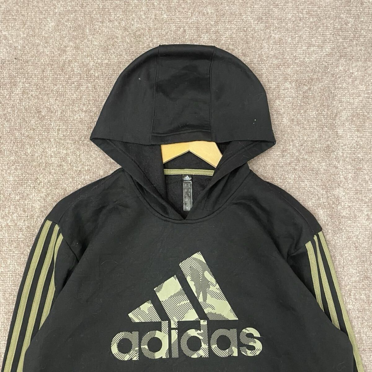 【S6664】 adidas アディダス パーカー プルオーバー サイズO ブラック 黒 フロントデザイン フロントロゴ メンズ トップス 最落なし 古着 收藏