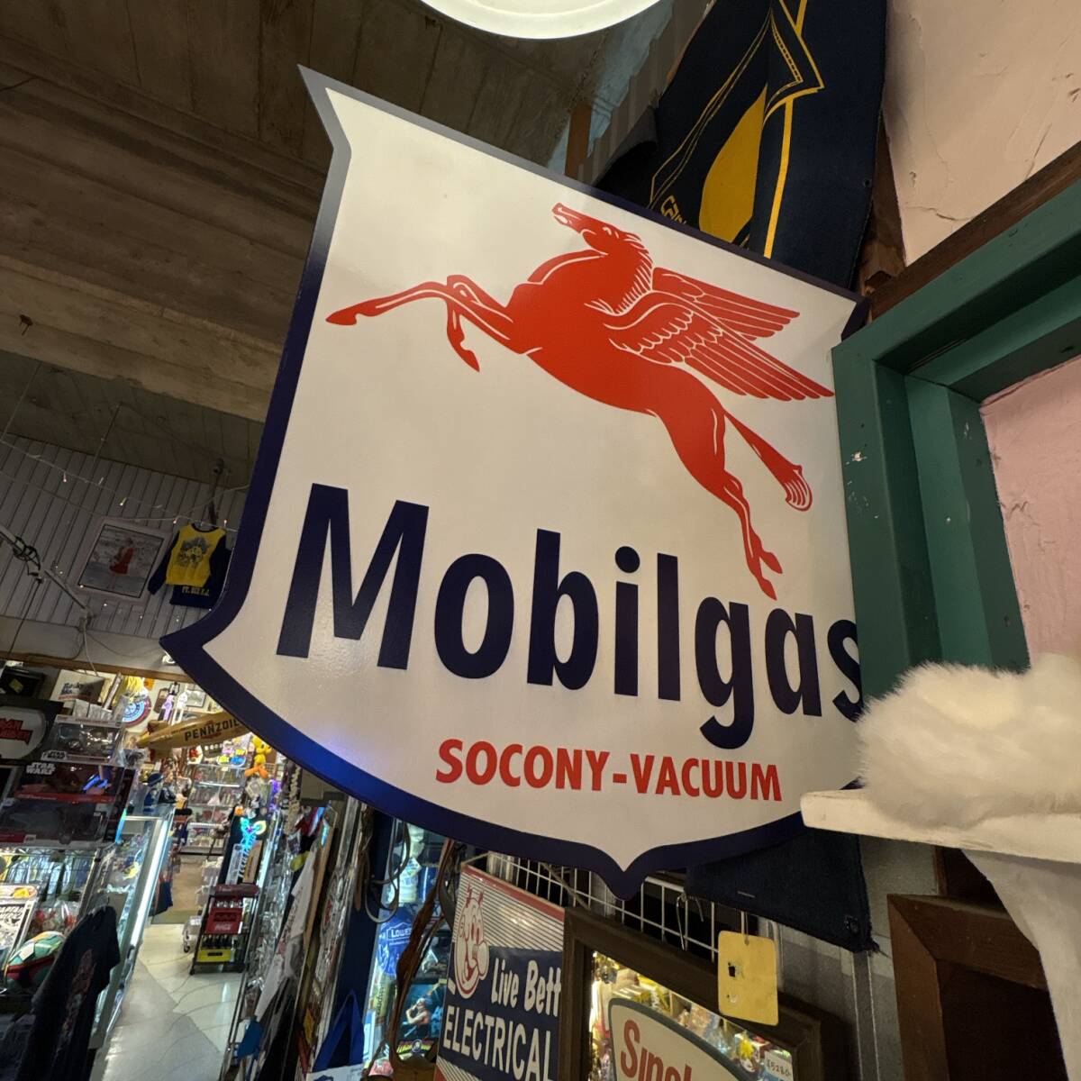 ヴィンテージ★MOBILGAS 両面 看板★ペガサス、モービルガス、企業物、ガレージ、ガソリン、オイル 收藏