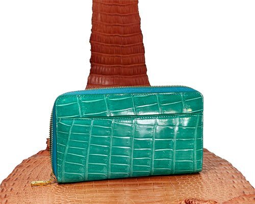 1円 ~ ヘンローン社製 シャイニング クロコダイル ラウンド 長財布 ターコイズ 実物画像 新品 美品 シャイニング&ボンベ仕上げ 收藏