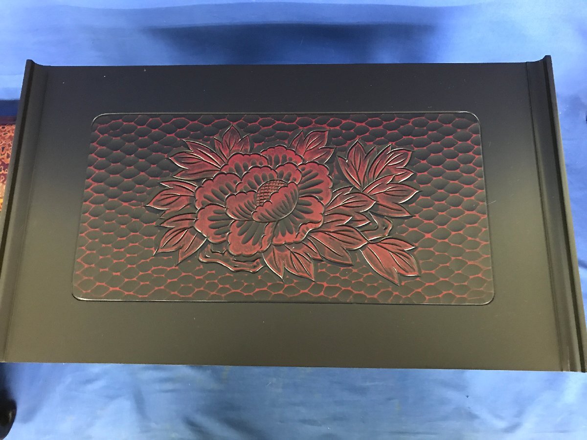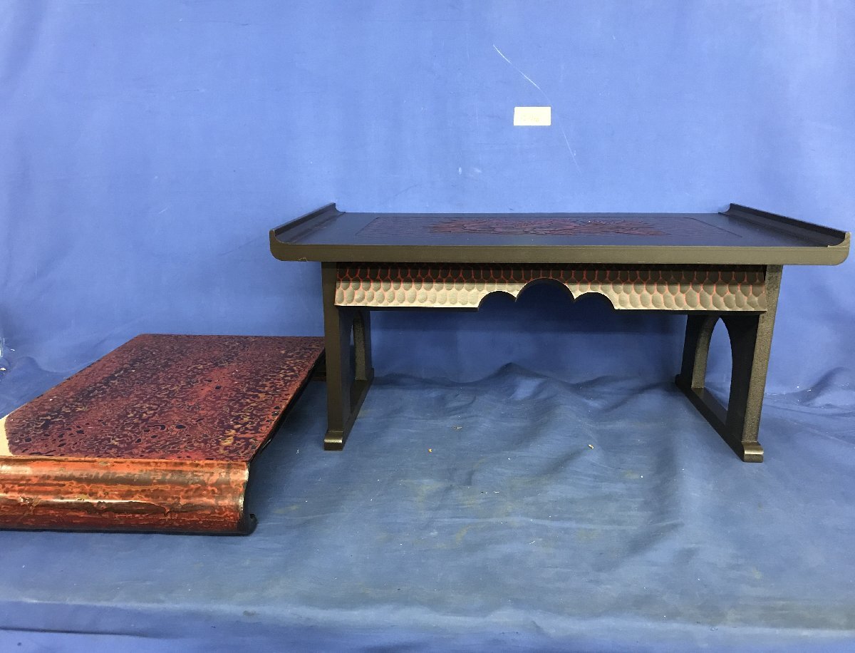 ★12―110★木製家具 詳細不明 鎌倉彫風 経卓 前卓/漆塗り 花台 2点まとめ 仏具 飾り台 ビンテージ アンティーク 骨董 供物台[140] 收藏