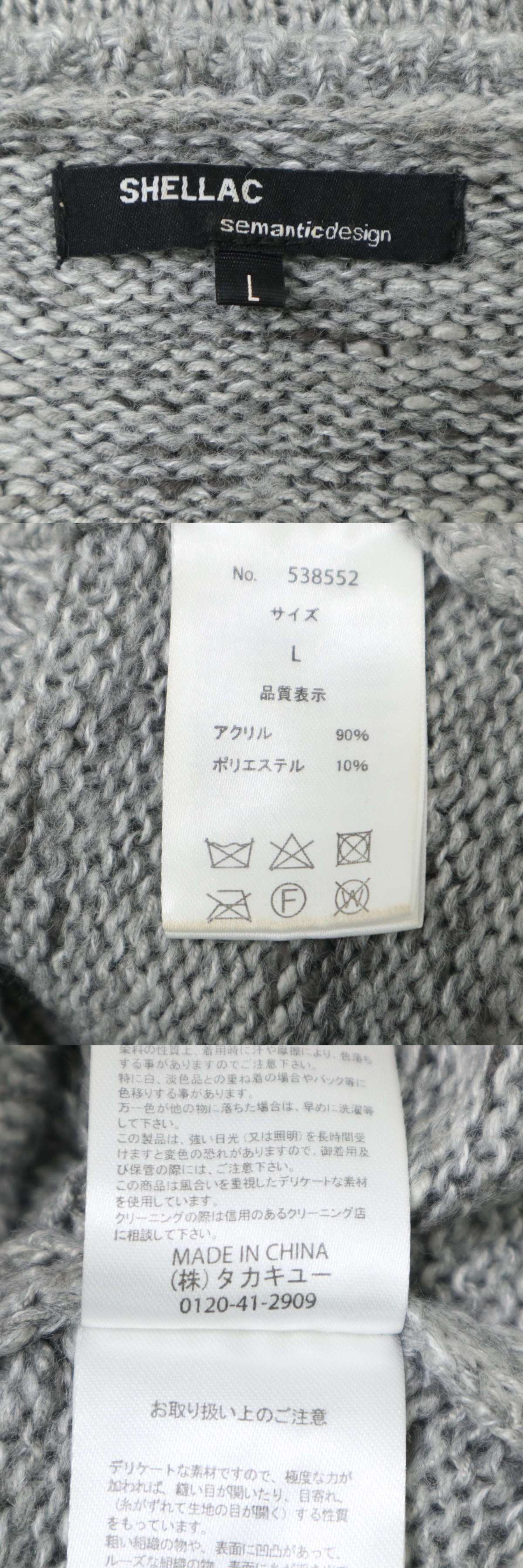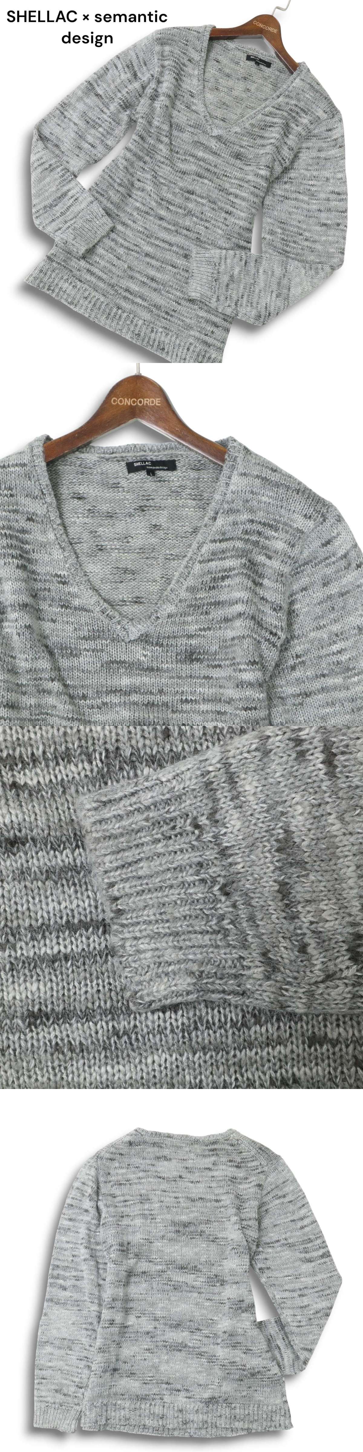 SHELLAC × semantic design シェラック × セマンティック デザイン 秋冬★ 深Vネック ニット セーター Sz.L メンズ グレー 收藏