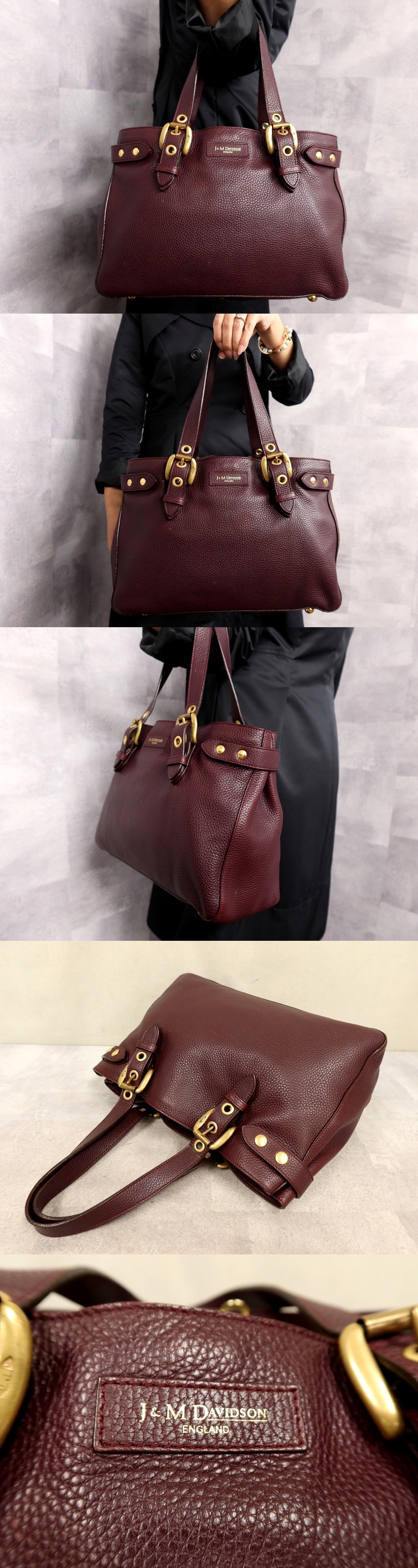 ●超美品●J&M DAVIDSON デヴィッドソン●BIANCA●カーフ レザー 本革●トート バッグ●パープル●ゴールド金具●A4 収納 かばん●Js62157 收藏