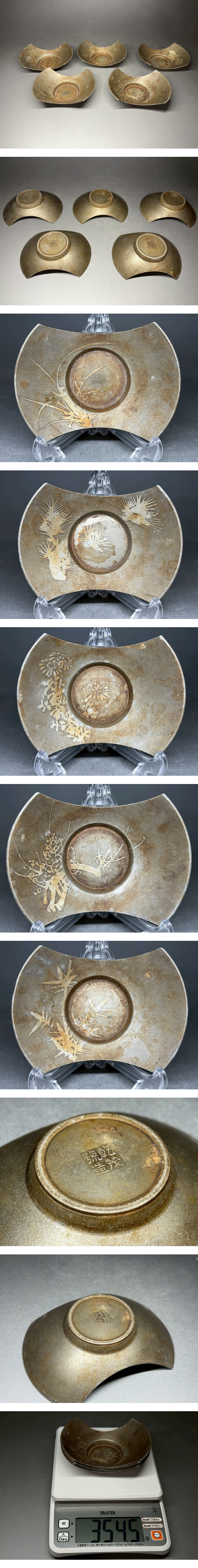 乾茂號造 本錫製 重量354.5g 茶托 煎茶道具 五客揃 茶道具 骨董 置物 飾物 中国 古玩 金属工芸 芸術 古美術 在銘 落款 売切7 收藏