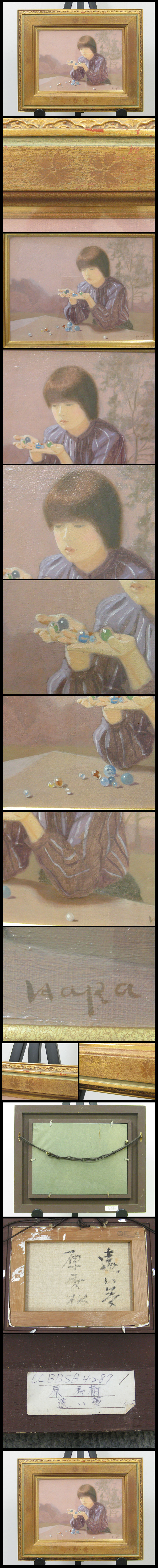 【心庵】額装 原秀樹「遠い夢」美少女/油彩 F4号 真作 B416 收藏