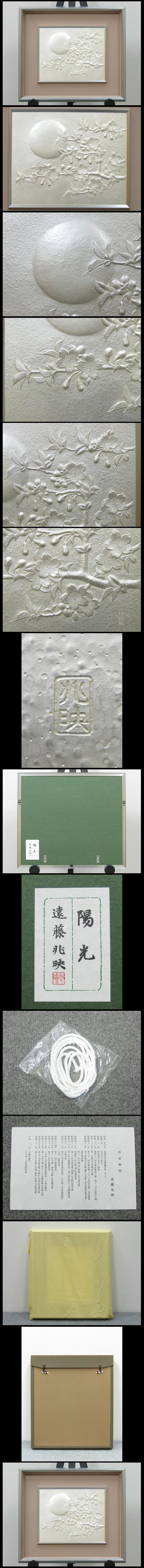 【心庵】額装 遠藤兆映 彫金画「陽光」山桜図 3号 共シール 略歴 日展評議員 タトウ付 B819 收藏