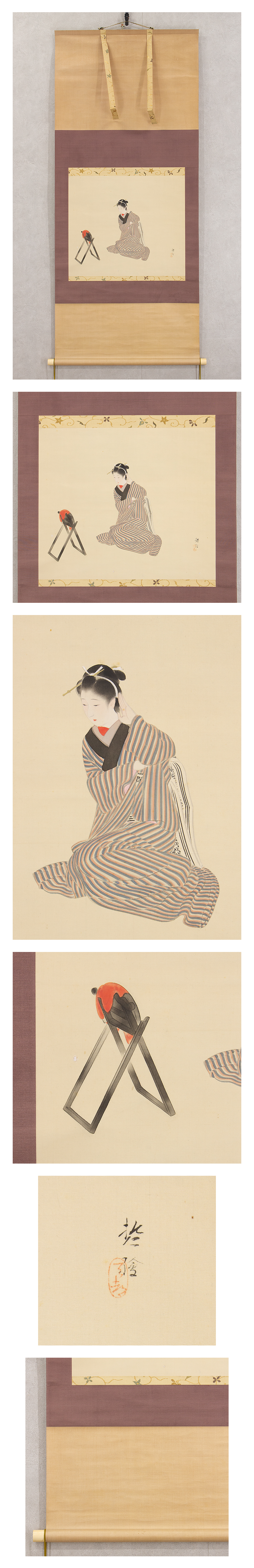 【真作】勝田哲 かねてより 美人画 掛軸 共箱 山元春挙に学ぶ 收藏