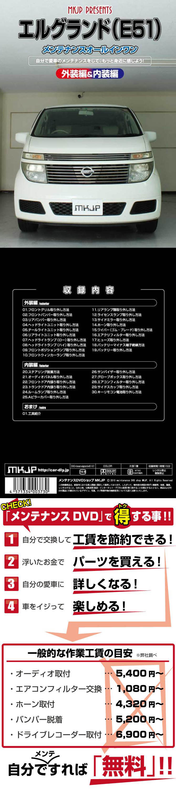 エルグランド E51 メンテナンスDVD 純正パーツ 純正部品の着脱に【メーカー公式 ゆうメール送料無料】 收藏