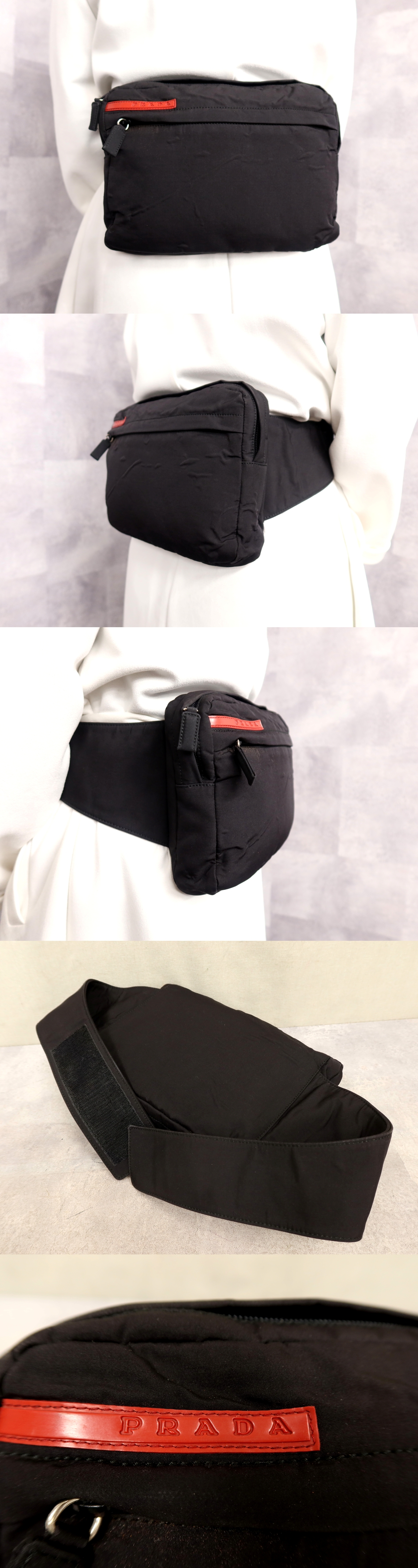 ●超美品●PRADA プラダ スポーツ●ナイロン●ウエスト バッグ●黒 赤●シルバー金具●イタリア製●収納 かばん●Js62450 收藏