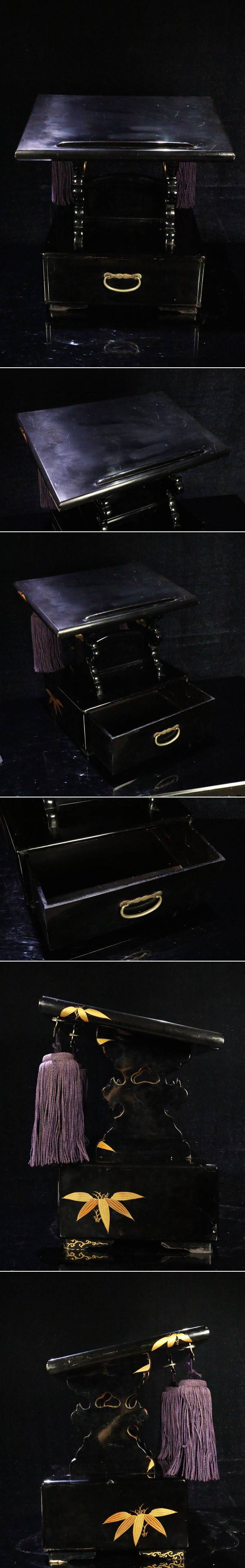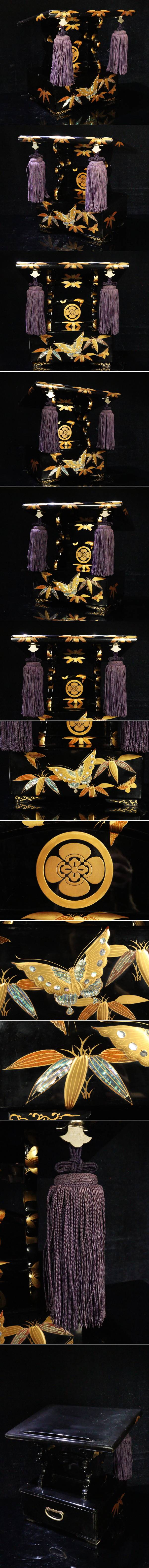 【ASAHI】大名家伝来品 江戸時代 黒漆塗高蒔絵螺鈿細工蝶々図経台 50.5cm 唐草金具 取手 経机 見台 時代物 仏具 仏教美術[71149wo] 收藏