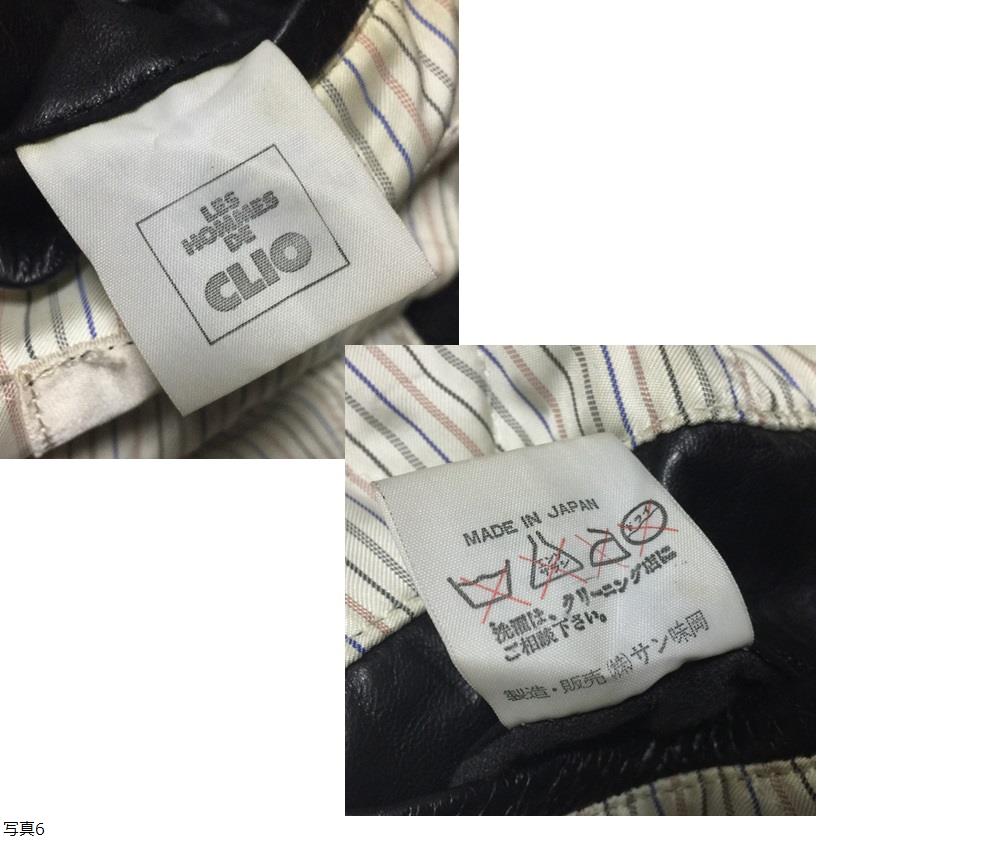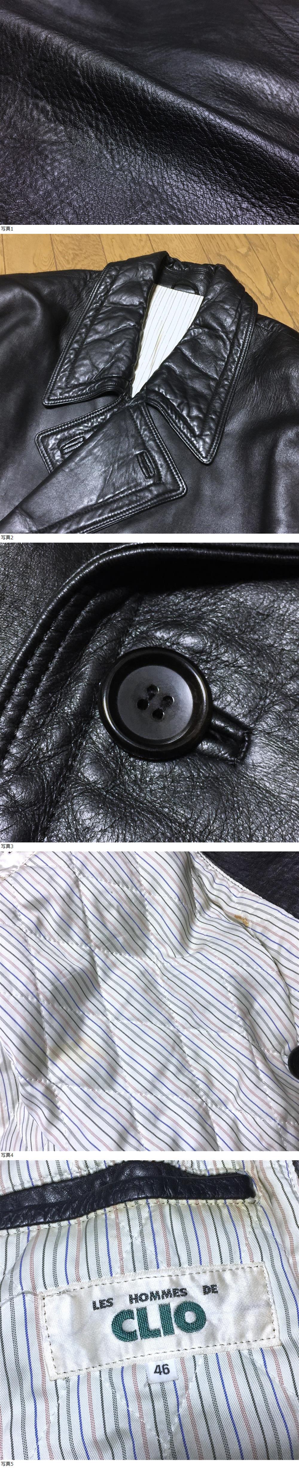 希少 LES HOMMES DE CLIO クリオ 日本製 90s ヴィンテージ 羊革 レザー 中綿 ダブルブレスト カーコート Pコート メンズ 46 M 黒 ブラック 收藏
