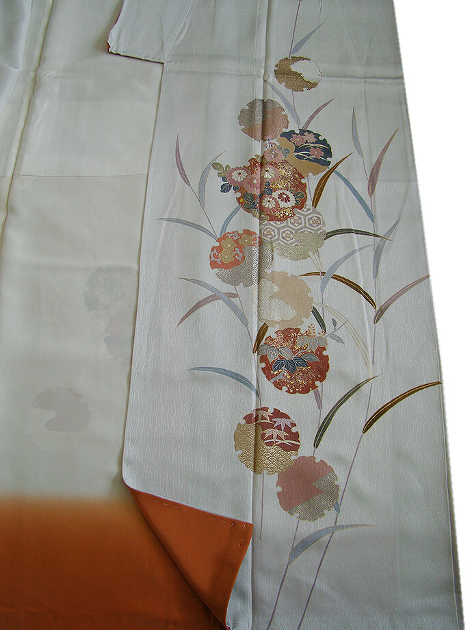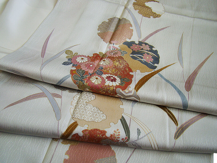 | ちょっと一言 | 滑らかで着心地良い上質な極上綸子地を纏う、本加工染の楚々とした美しい訪問着です。 慶賀の宴や記念の式典にも装いたい趣が匂い立つ様な清々しい空間美に誘う逸品です。 どんなお客様にも好感度大の長く着られる一枚を大切に纏う醍醐味をご堪能下さいませ。 |