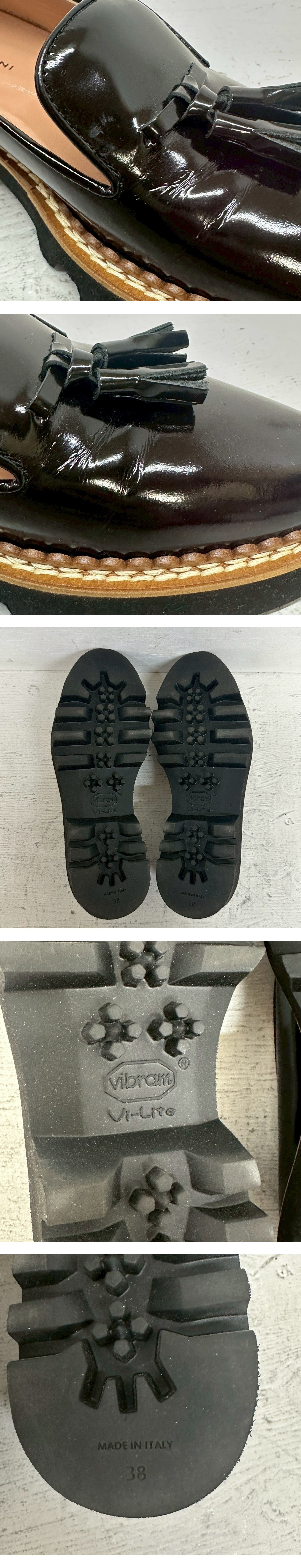 【FABIO RUSCONI ファビオルスコーニ】タッセルローファー 厚底 ブラック 黒 MADE IN ITALY イタリア製 サイズ38 24cm-24.5cm USED 收藏