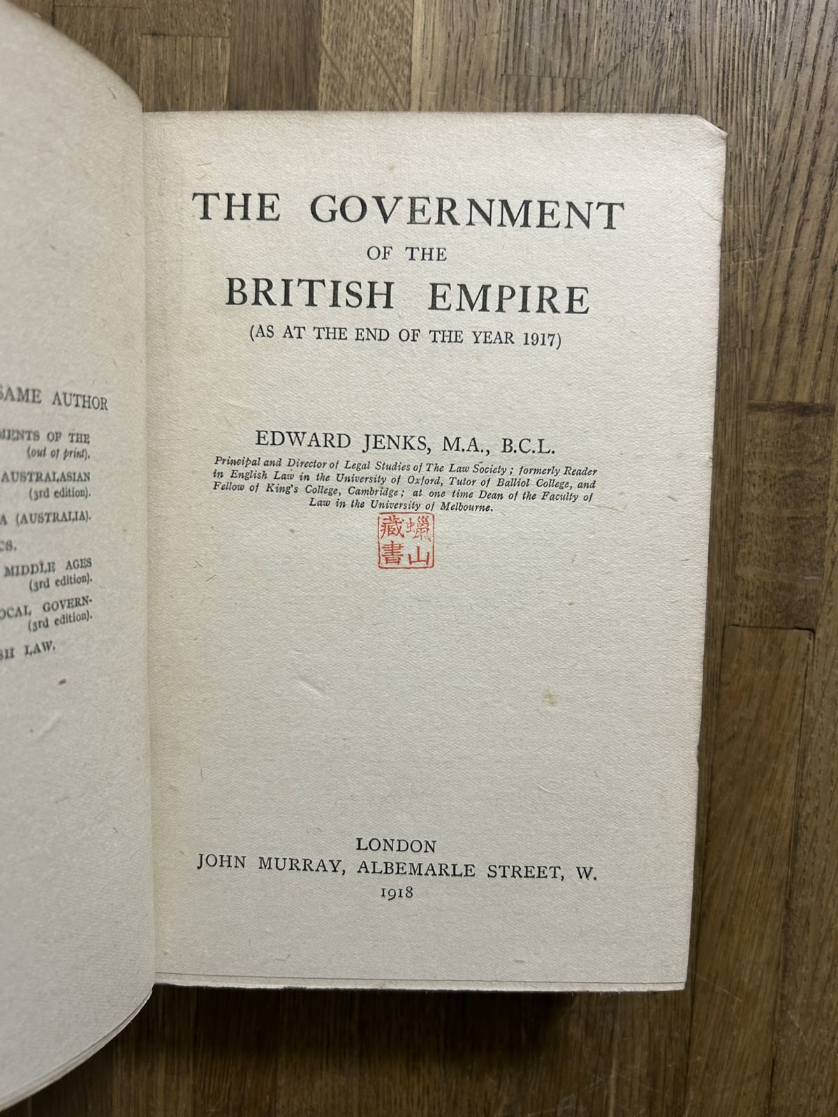 1918年 初版 ジェンクス『大英帝国統治』 Edward Jenks / The Government of the British Empire 收藏