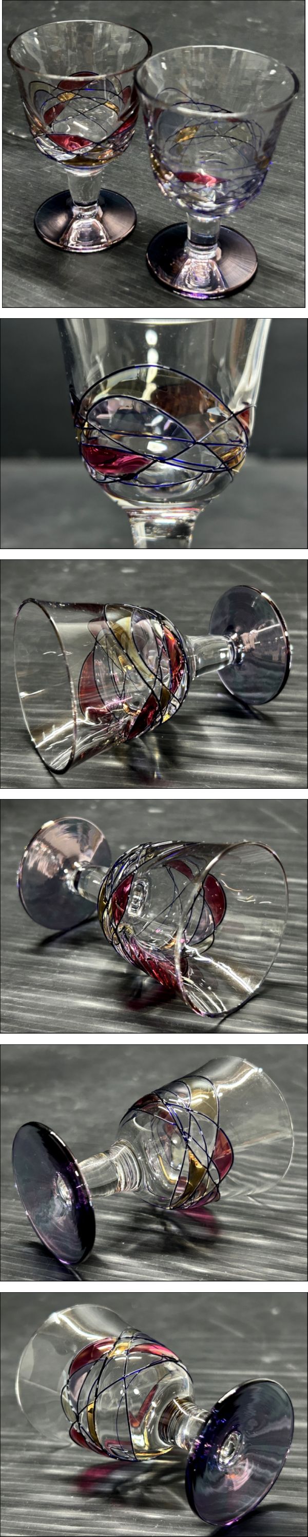 美品/未使用品? ADERIA ROMANIA アデリア ルーマニア お猪口グラス ステンドグラス風 ミニペアグラス 盃/ぐい呑み/日本酒/冷酒/石塚硝子 收藏