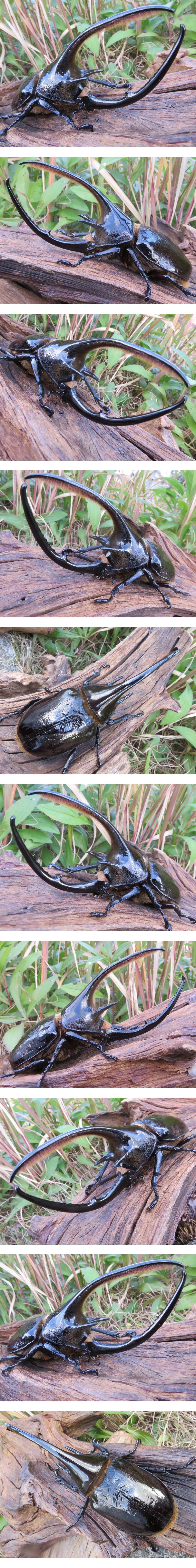 計測方法は、虫を平らな所に置き、ノギスにて計測し、胸角~上翅末端までの最大値約125mm、お尻までの最大値約126mm