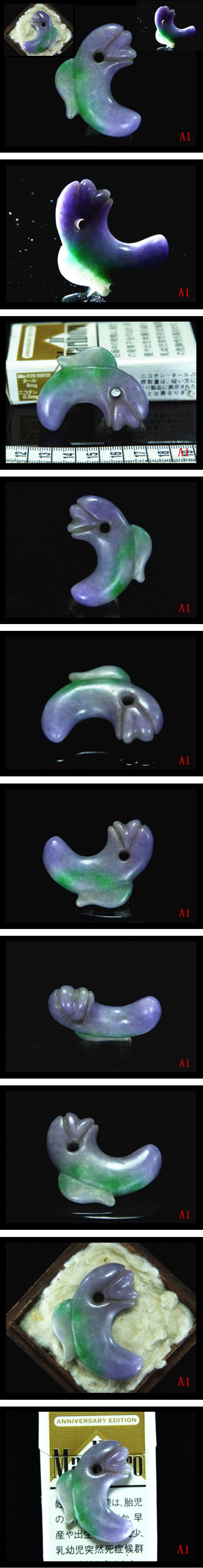 【A1】古墳期★透明感抜群ラベンダー濃紫色若緑色★極上質ろうかん硬玉翡翠製★迫力極希少鬣付き異状獣形勾玉★検古墳出土器祭祀仏像原石 收藏