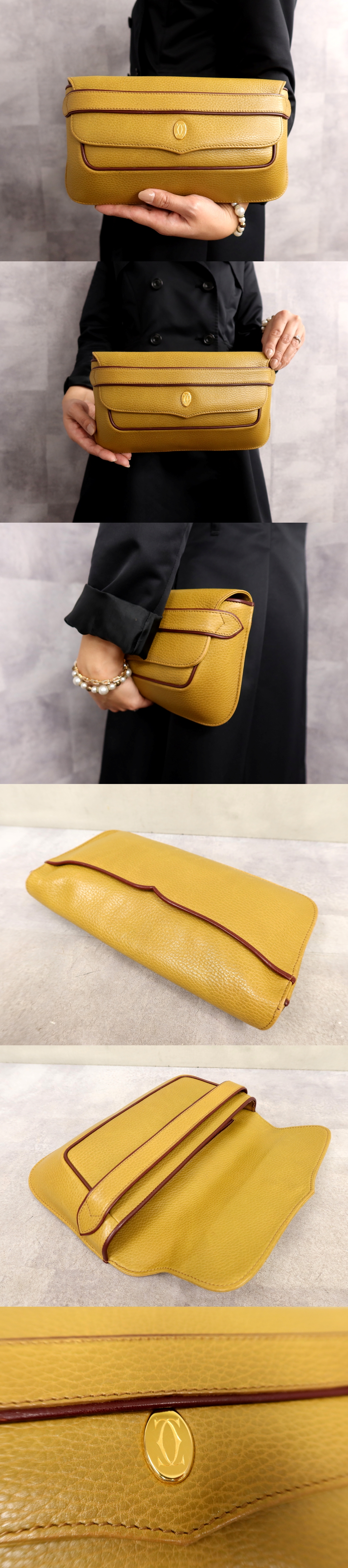 ●超美品●Cartier カルティエ●マスト●ロゴ金具●カーフ レザー 本革●セカンド クラッチ バッグ●マスタード●ゴールド金具●Js63393 收藏
