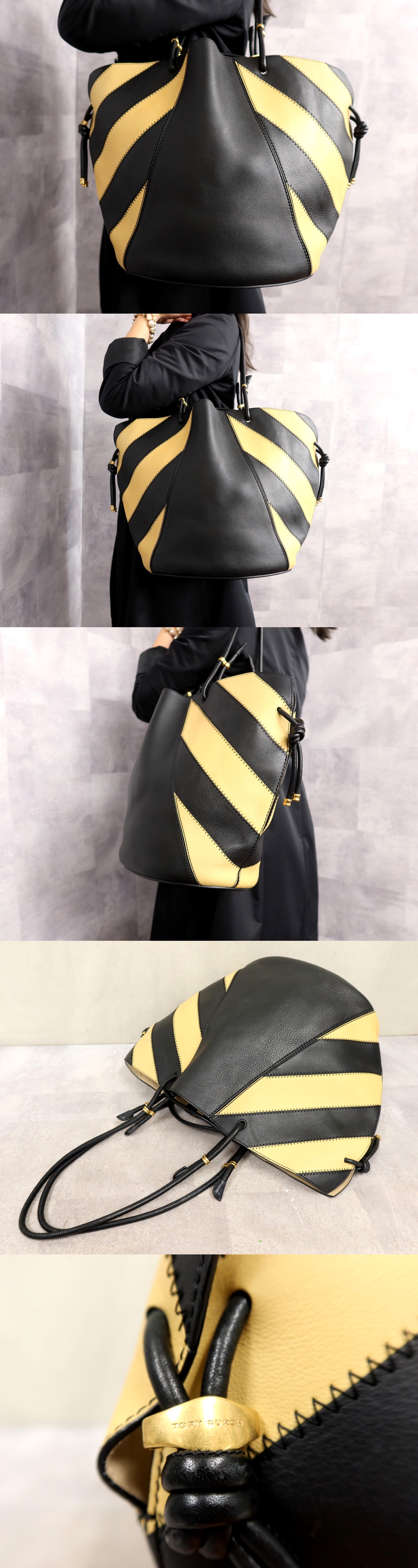●超美品●TORY BURCH トリーバーチ●カーフ レザー 本革●トート バッグ●黒 クリームイエロー●ゴールド金具●肩掛け●A4 収納●Js63453 收藏