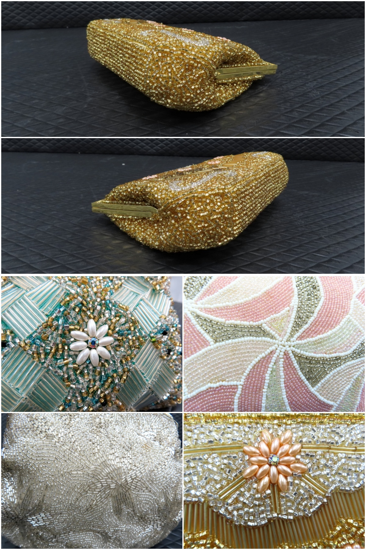 ◆超美品◆ビーズ ハンド バッグ 4点 まとめ売り◆金 銀 ピンク グリーン ホワイト◆チェーン◆がま口◆和装◆パーティー◆腕掛け◆A14772 收藏