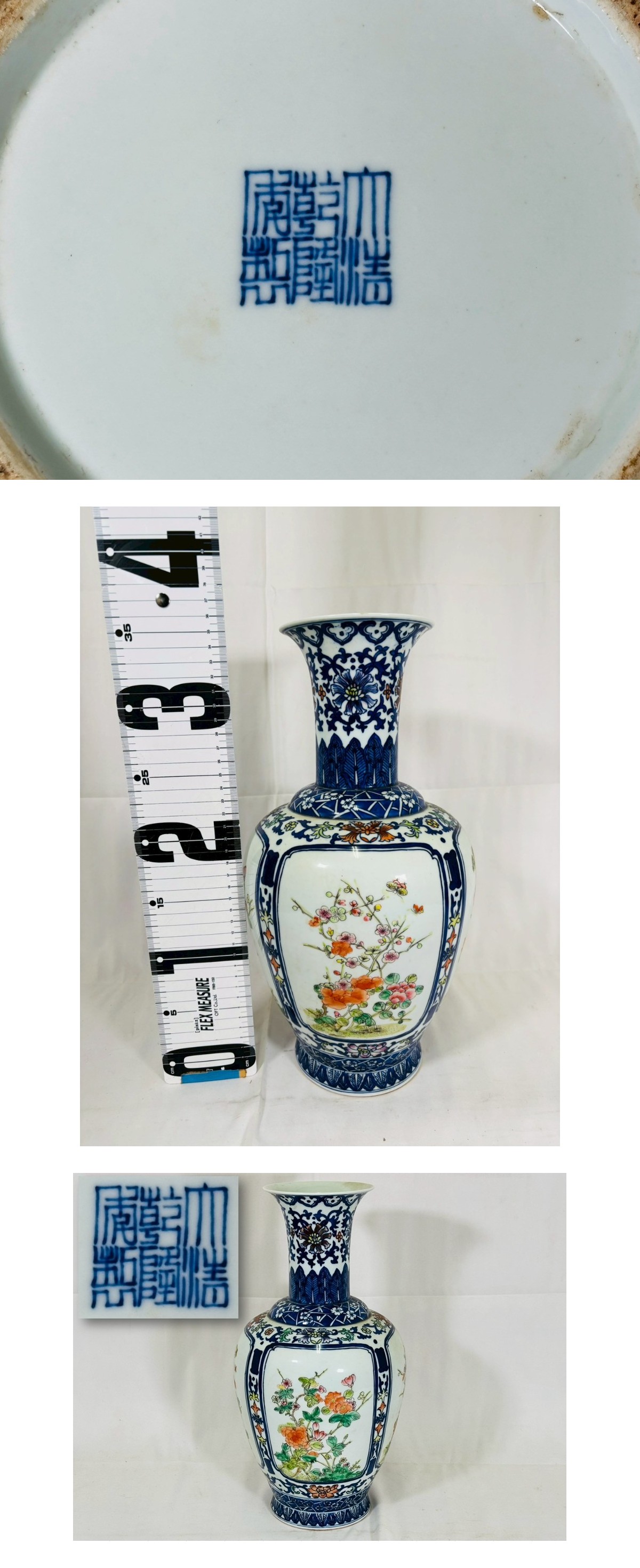 【旧家蔵出】中国古玩 大清乾隆年製 銘 染付粉彩牡丹花鳥文 飾壺 景徳鎮 唐物 骨董 古美術 高約38cm 時代物 置物 飾物 伝統工芸 收藏