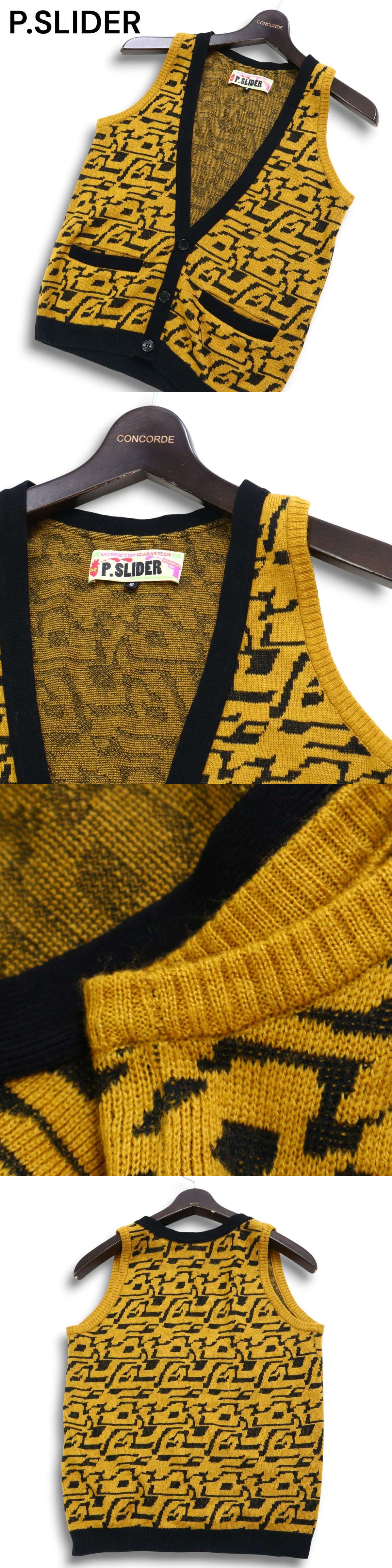 P.SLIDER ピー・スライダー 秋冬 ウール混★ ニット 幾何学柄 ベスト Sz.S メンズ 日本製 收藏