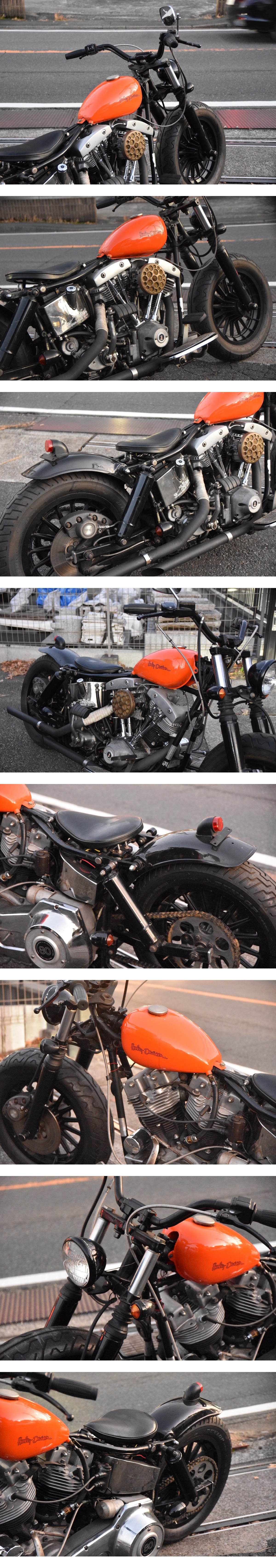 | 数あるオークションの中から当オークションをご覧頂き誠にありがとうございます。1979年モデルのショベルヘッドFLH1340を出品させて頂きます。昭和54年新規登録の国内ディーラー車でございます。 ●型式 3G ●車体番号 3G***H9 ●走行距離 0km付近 ●車検証走行距離 平成24年16900km ●初年度登録 昭和54年9月 ●車検 なし 予備検査29000円にて承ります。 エンジンは異音など無く始動性も良好、高回転までスムーズに吹けあがります。アイドリングも安定しておりエンジン音もとても静かでございます。 外装はタンク凹み無し、鉄パーツややさび箇所あり、その他年式、中古車なりのコキズ等はあるものの目立った傷や破損は無く全体的に艶もあり綺麗な印象でございます。 シート切れ無し、フォーク漏れ無し、タイヤは前5分山程、後ろ8分山程残っております。 フレームの歪みや修復歴はございません。 主な仕様、変更点等 ■スラッシュカットマフラー ■ケイヒンバタフライ ■ドリルドキャブカバー ■ホースシューオイルタンク ■サドルシート ■ピーナツタンク ■トラッカーバー ■フットボード ■カバードサス ■ショートフェンダー ■エンシン各部ポリッシュ その他 中古車ですので可能な限り現車確認、試乗をお願いします。 遠方で現車確認が出来ない方は納得いくまでご質問下さい。 全国どこでもご自宅または営業所までお届け可能でございます。 神奈川近郊の方は格安にてお届け可能でございます。 ご不明な点はお気軽にご質問下さい。 | ||