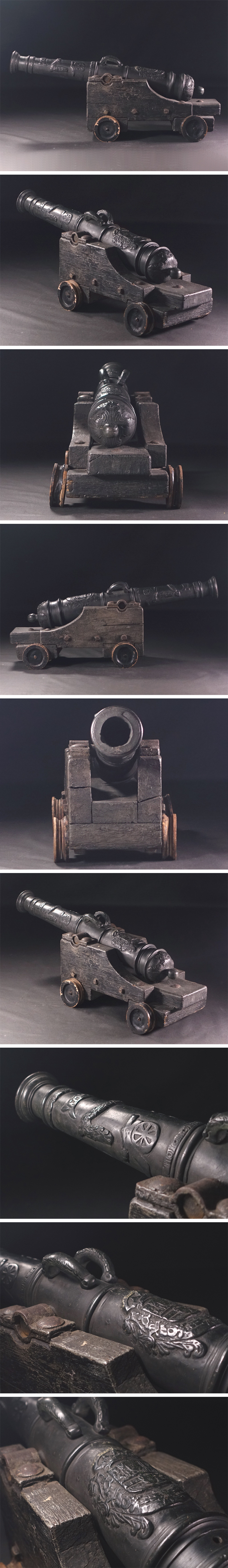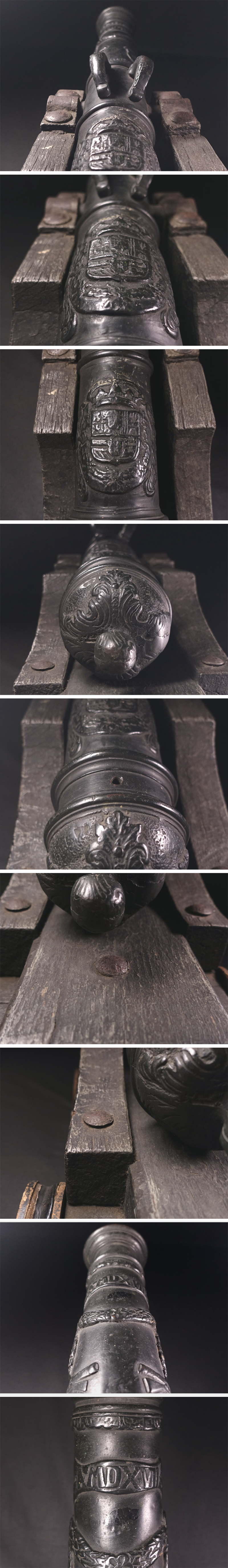 ∇花∇18世紀オランダ アムステルダム海軍の大砲 MDXVII銘 青銅製大砲 砲台 キャノン 砲筒 砲身70cm 特大銃火器模型 收藏