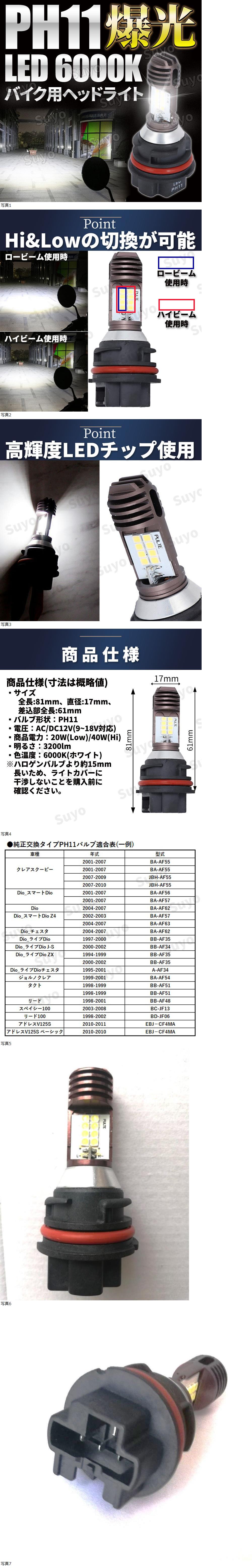 PH11 LED ヘッドライト バイク バルブ ホワイト ホンダ Honda リード ライブディオ Dio スズキ SUZUKI V125S タクト スマートディオ 收藏