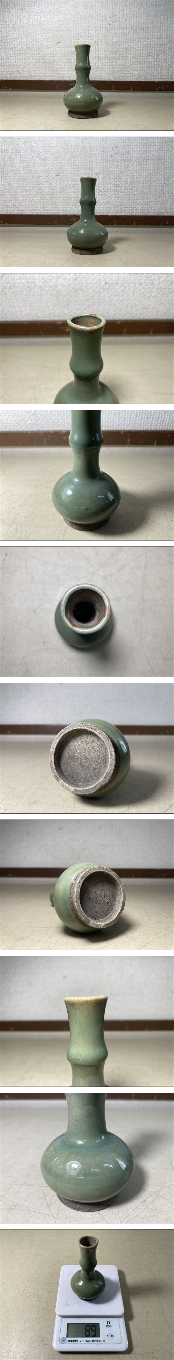 京都6☆ 時代物 青磁 一輪挿し 花瓶 重量 約89g 口径 約2cm 高さ 約10cm 現状品 中国美術 古物 收藏