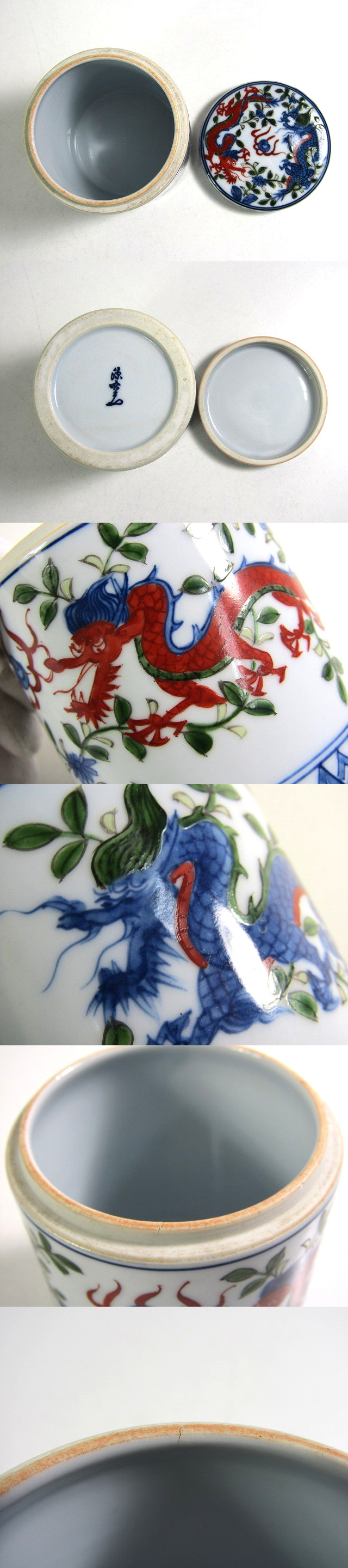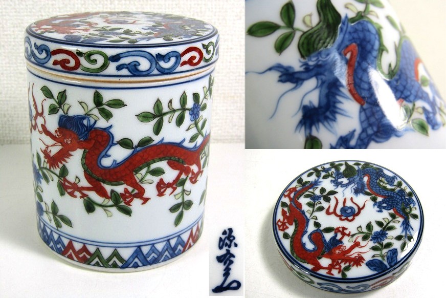 館林源右衛門 色絵 飛龍文 茶入【説明欄に詳細写真有り】の出品です。