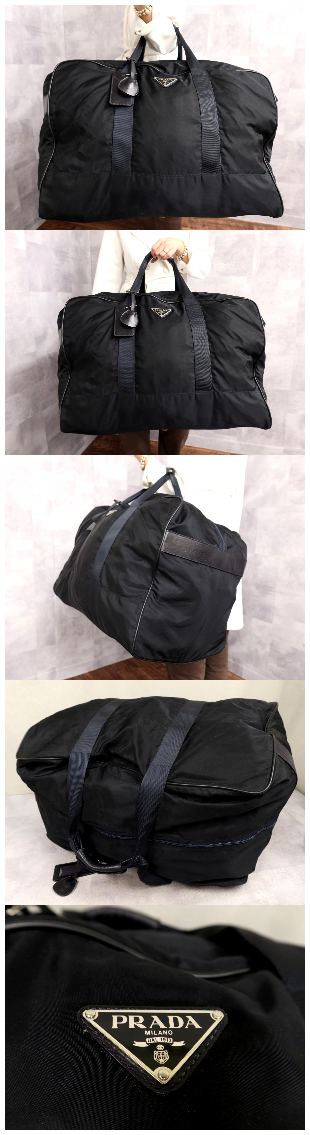 ●超美品●PRADA プラダ●三角ロゴプレート●ポコノ ナイロン カーフ レザー 本革●ボストン バッグ●ダークネイビー●SV金具●Js64311 收藏