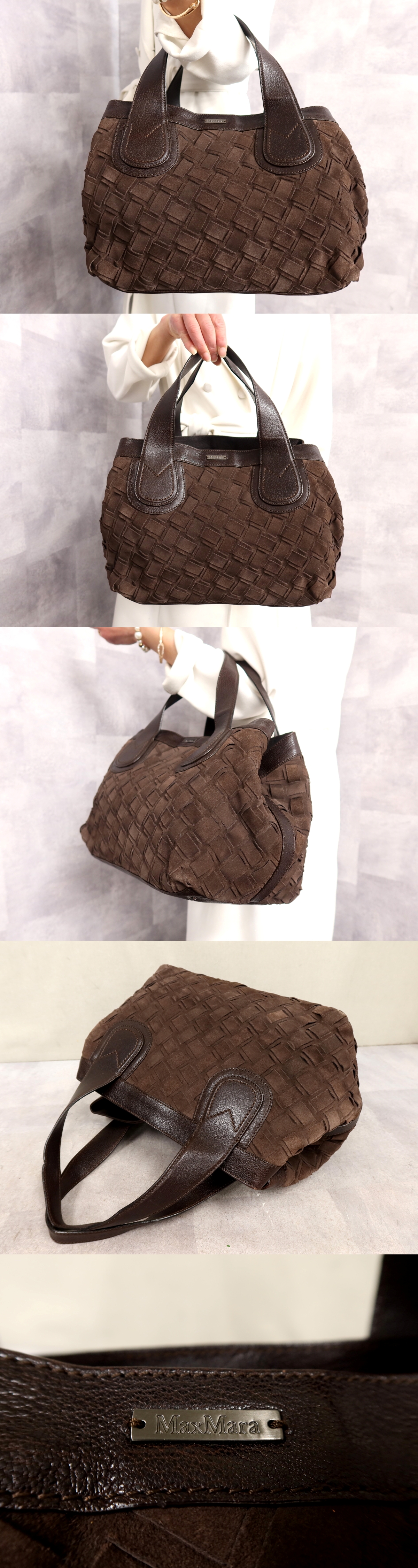 ●超美品●Max Mara マックスマーラ●スエード カーフ レザー 本革●ハンド バッグ●ダークブラウン●腕掛け●A4 収納 かばん●Js64213 收藏