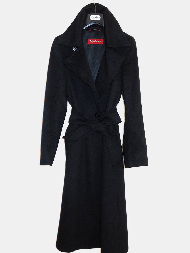 MaxMara Studio■マックスマーラステュディオカシミヤ100%ベルテッドコート■ブラック黒38 收藏