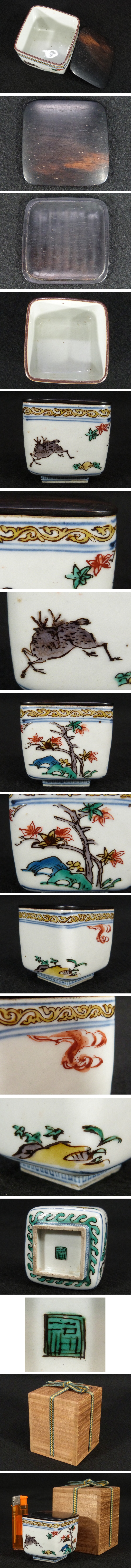 | 商品名 | 古九谷 色絵 紅葉に鹿文 角向付 唐木蓋 茶器 角福 江戸中期 | ||||