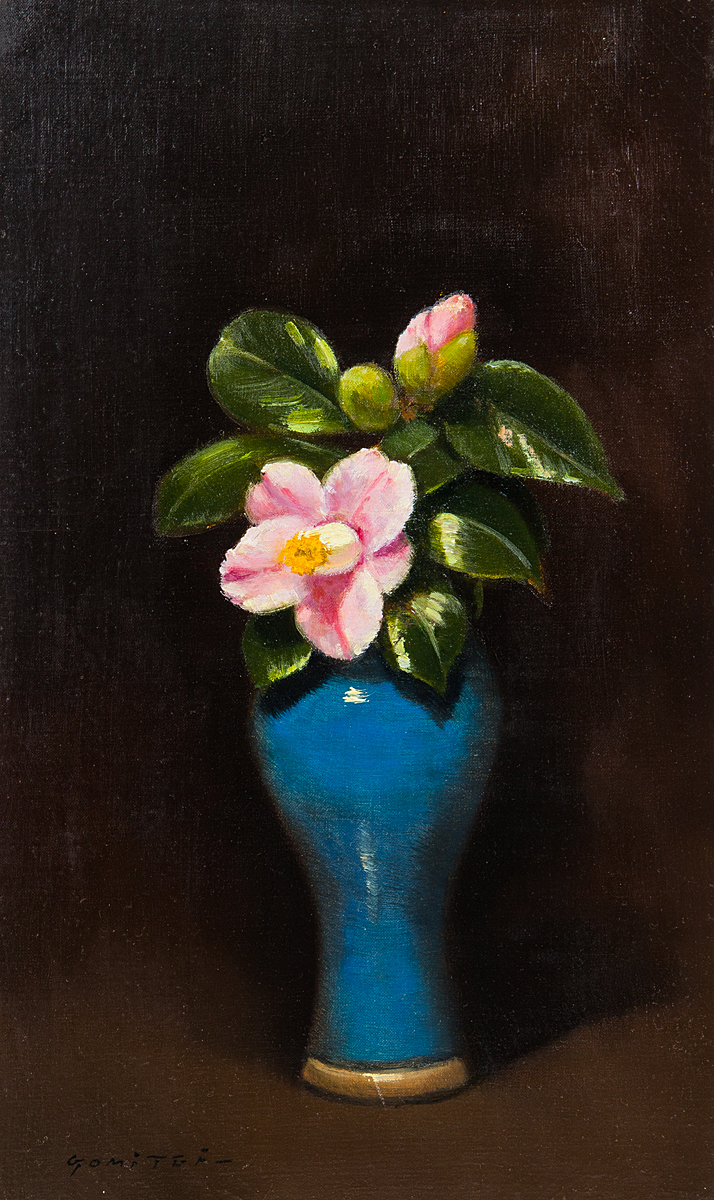 【1on1】真作 五味悌四郎 『中国壷の御所錦』 油彩 キャンバス 8号 1973年 額装 / 東京美術学校 一水会優賞 パリ・グランミョールに学ぶ 收藏