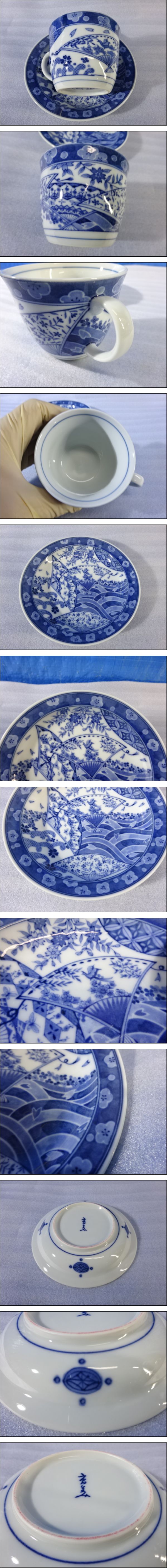 T-94/市田ひろみ 藍絵巻 コーヒー碗皿 5客組 珈琲用品 茶器 茶道具 カップ&ソーサー 陶器 陶芸品 和食器? 美品 キッチン台所用品 收藏