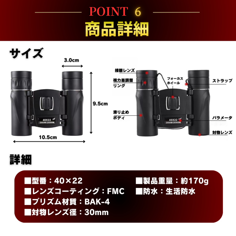 双眼鏡 望遠鏡 40倍 40×22 コンパクト 高倍率 長距離 軽量 防水 オペラグラス 高級 プリズム ポーチ付 ライブ コンサート アウトドア 收藏