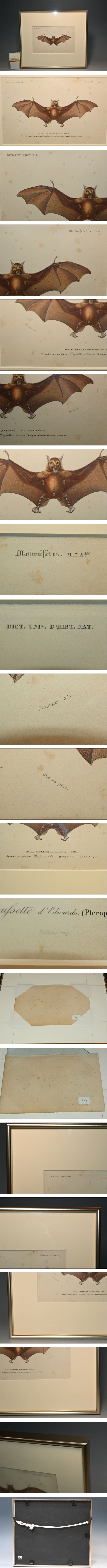 フランス 銅版画 オオコウモリ 手彩色 額装 D'Orbigny 万有博物事典 哺乳類 図鑑 博物画家 博物画 古書 蝙蝠 アンティーク アート 歴史資料 | |||