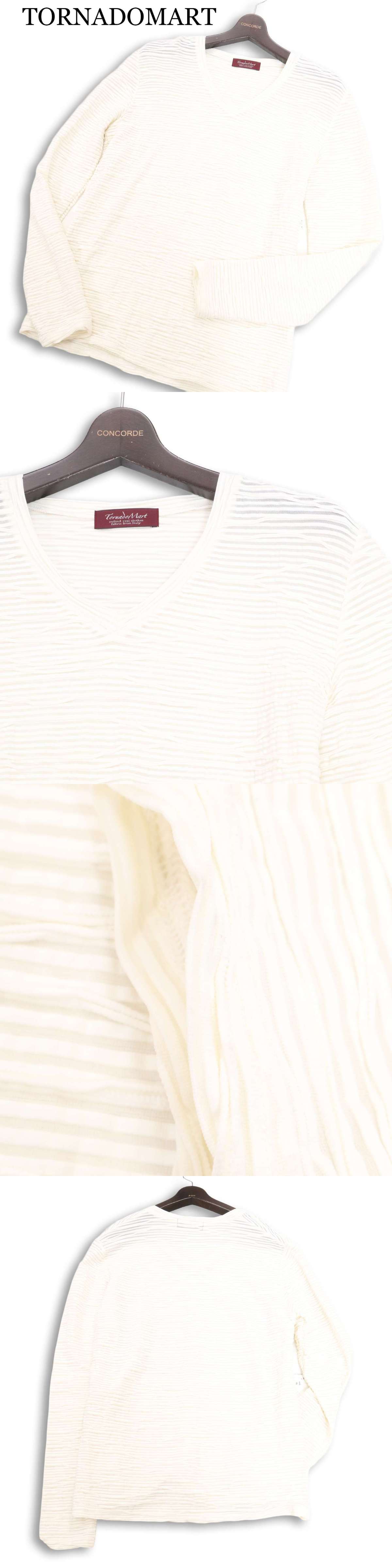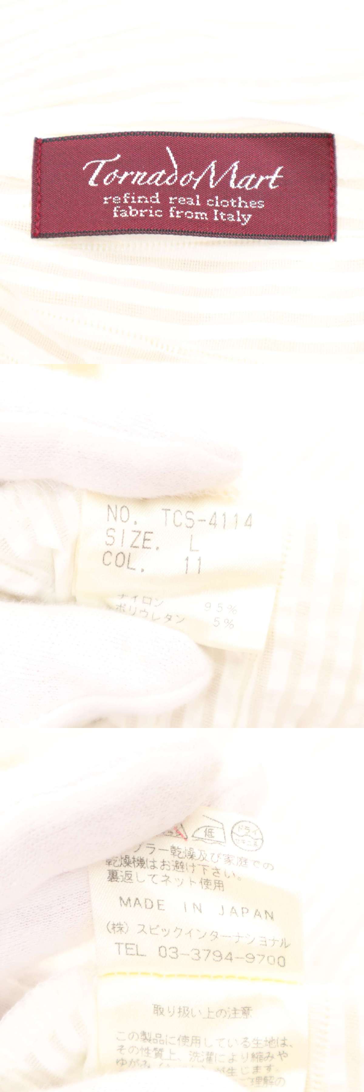TORNADOMART トルネードマート 通年 イタリア製生地★ 長袖 タックJQ ボーダー カットソー ロンTシャツ Sz.L メンズ 白 收藏