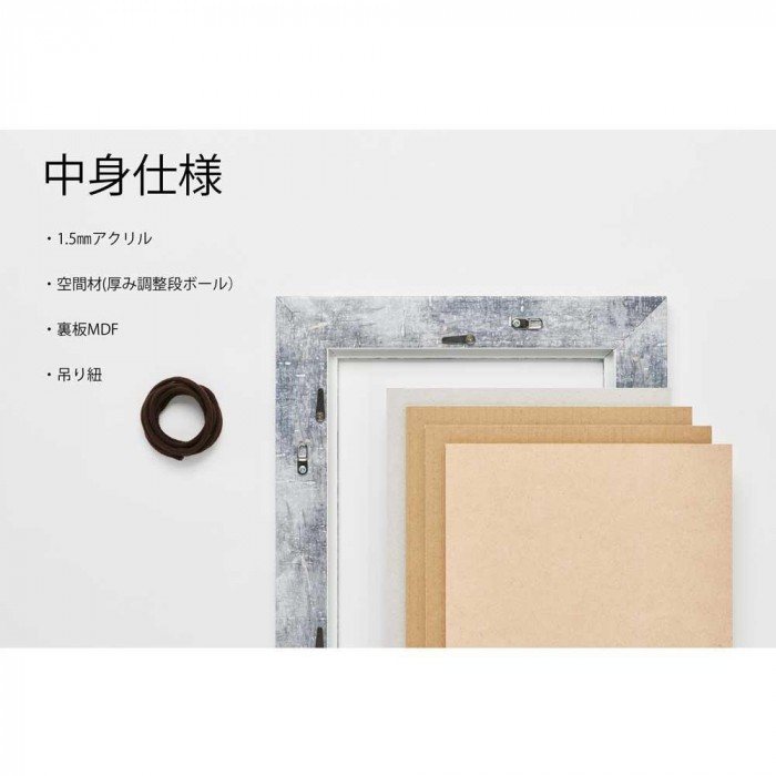 | 仕様 | 見え幅:46mm、カカリ:8mm、立ち上がり:16mm、深さ:11mm、作品厚 6mmまで、アクリル 1.5mm 【収納可能な作品サイズ】300角 300x300mm |