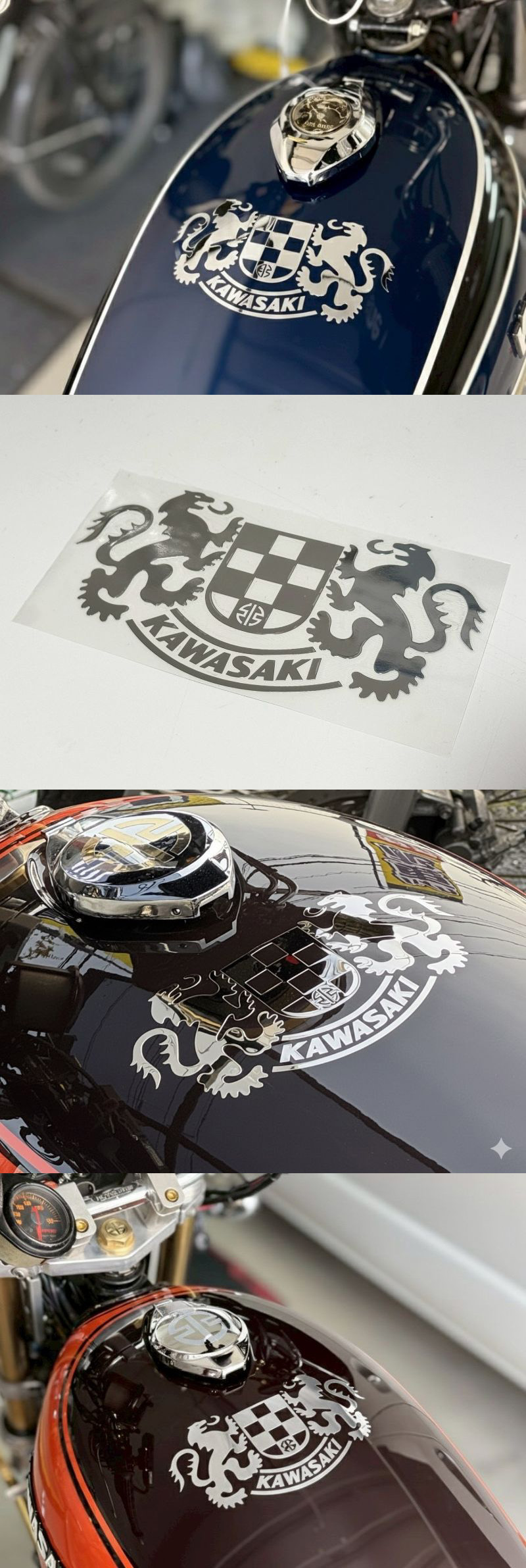 向い獅子 金属タンクステッカー シルバー 17cm×8.8cm カワサキ 川崎重工 KAWASAKI ゼファー Z750RS Z400FX Z900RS Mk2 KH 向かい獅子 收藏