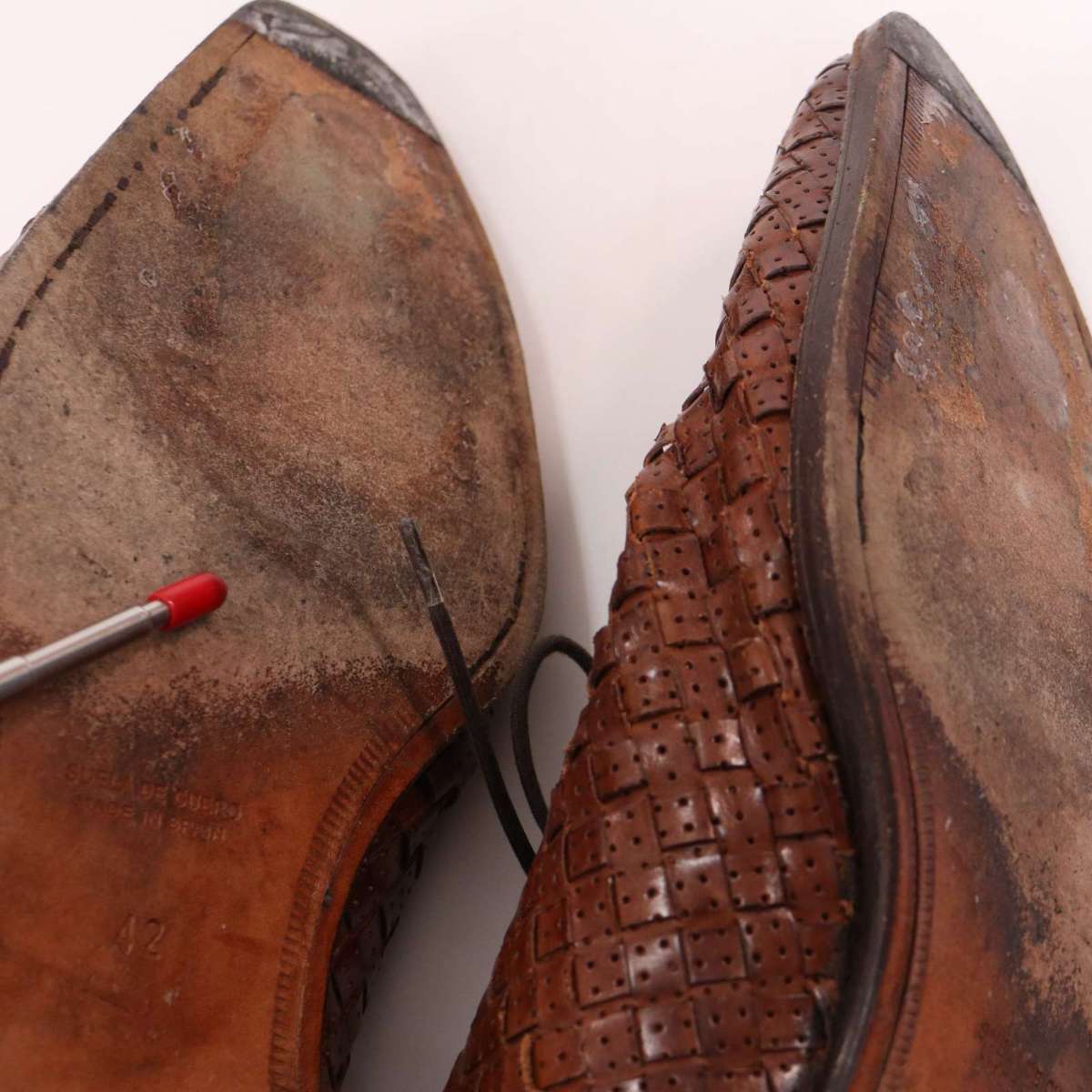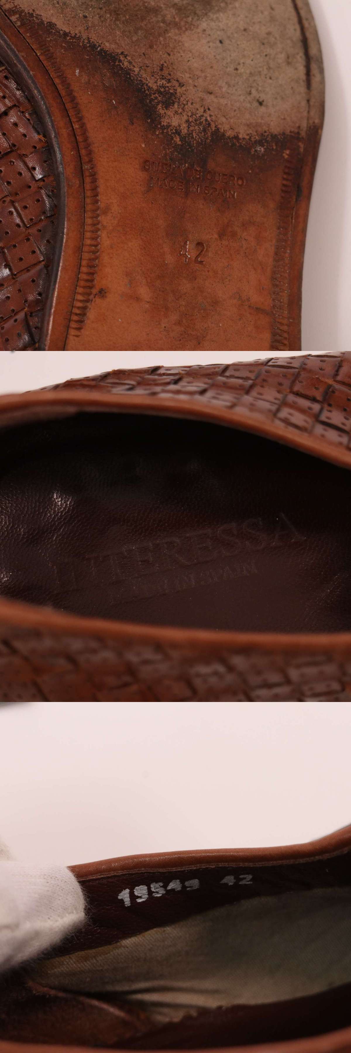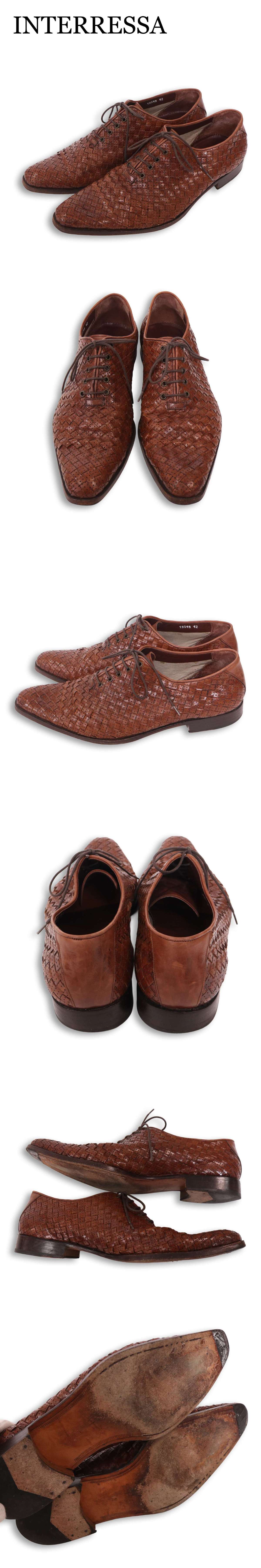 INTERESSA インテレッサ 通年★ 編み込み レザー ドレス シューズ レースアップ シューズ 革靴 Sz.42 メンズ ブラウン 收藏
